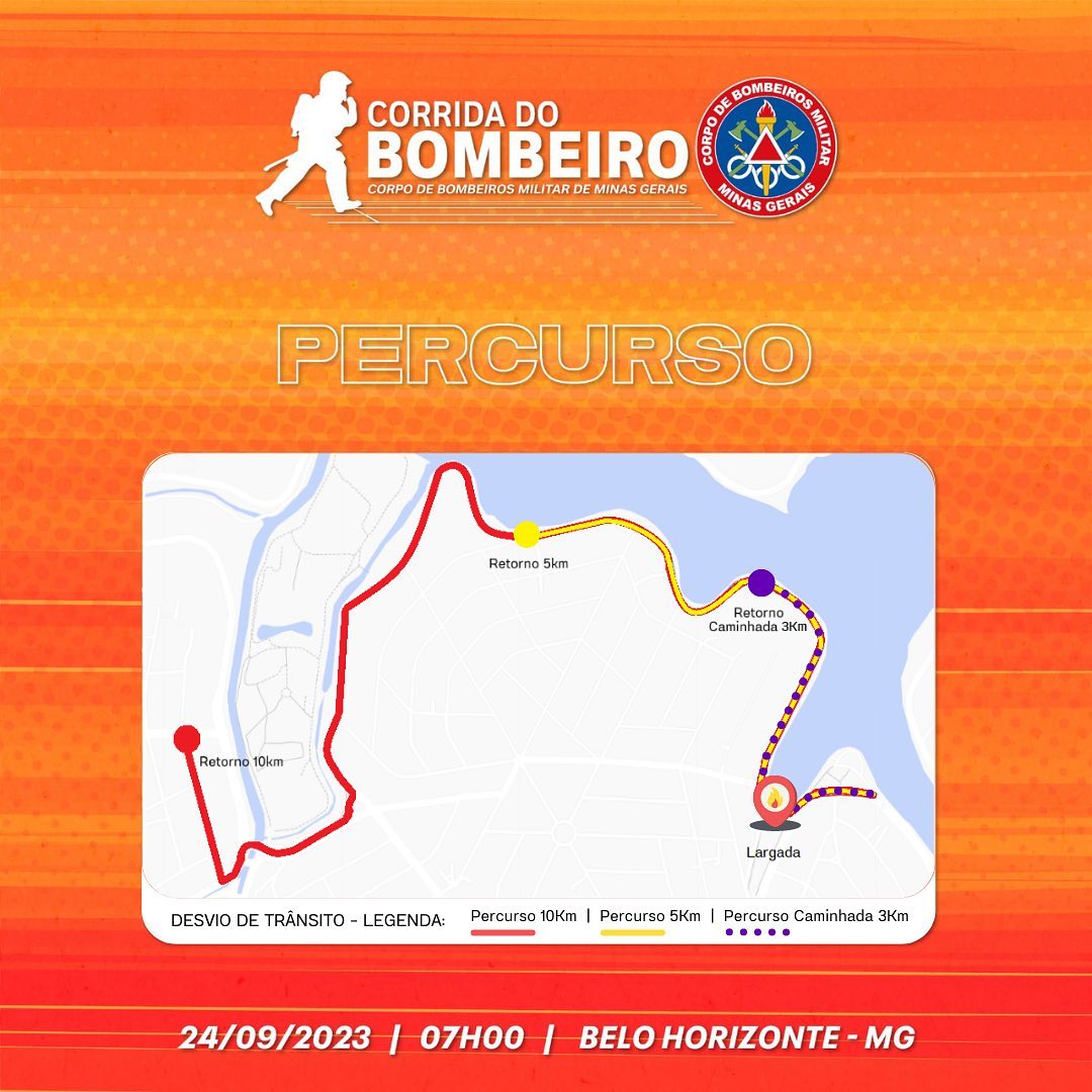 A 4ª Corrida do Bombeiro contará com percursos de 5 km e 10 km, além do circuito 3 km de caminhada.