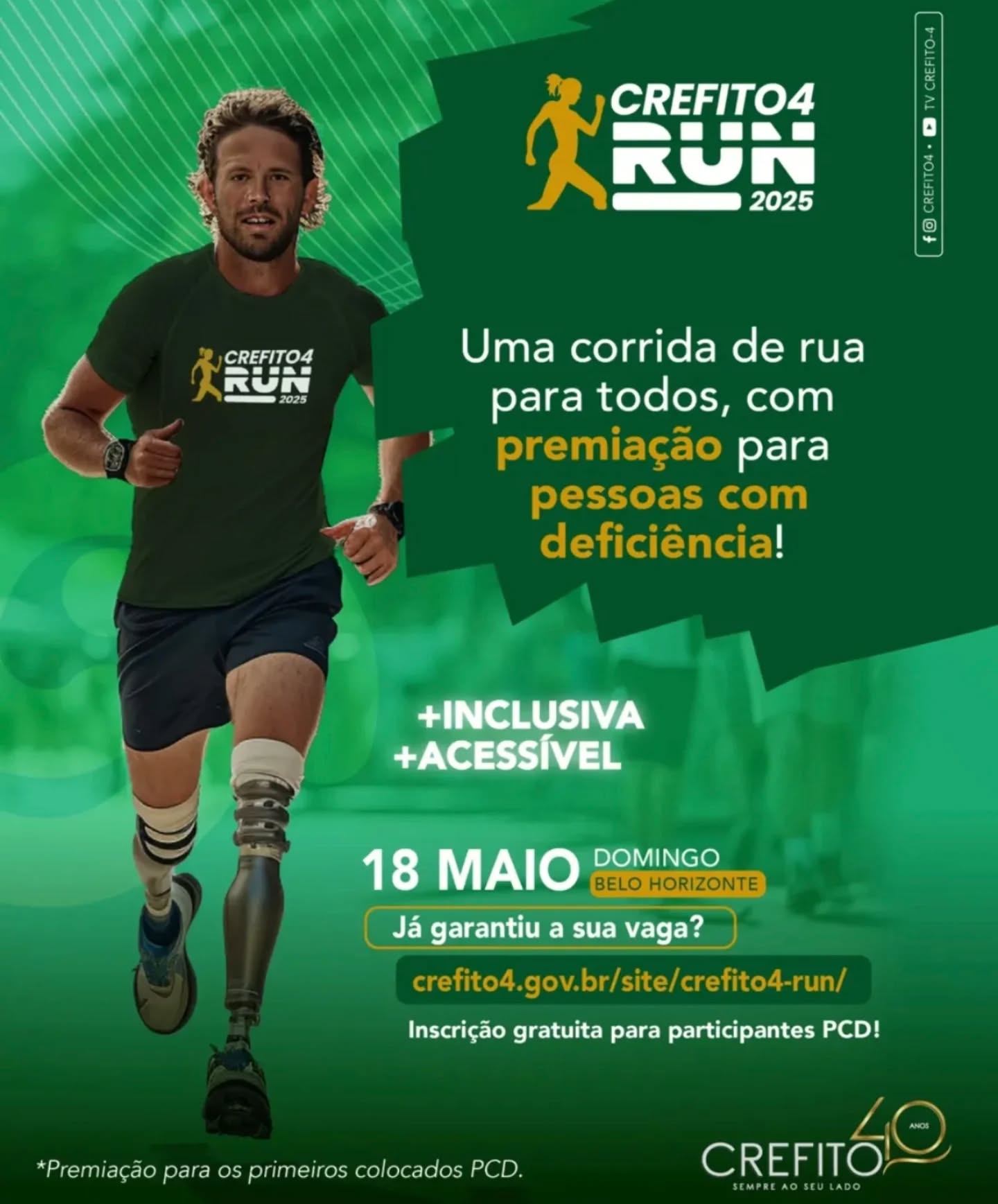O CREFITO4 RUN 2025 é um evento esportivo promovido pelo CREFITO-4 MG, que celebra a importância da saúde funcional e da atividade física para a qualidade de vida. A corrida visa integrar profissionais da saúde, praticantes de atividades físicas e a comunidade em geral, em uma manhã de celebração, superação e bem-estar.
