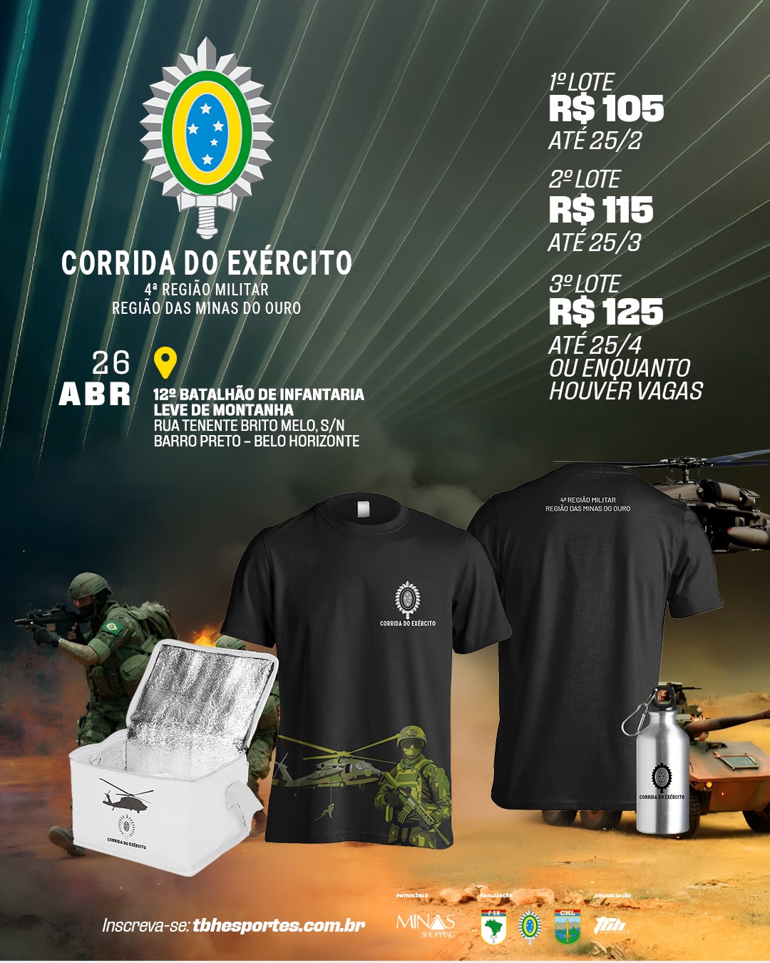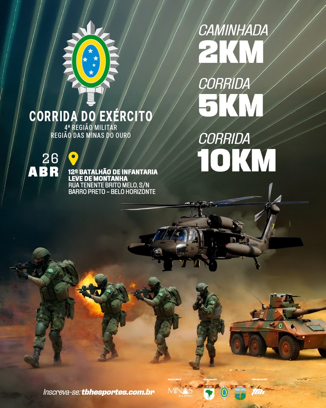Atenção, combatentes! Está autorizada a abertura das inscrições para o desafio mais vibrante do calendário! É hora de deixar a zona de conforto para trás e marchar em direção ao 12º Batalhão de Infantaria Leve de Montanha. Seja na corrida ou na caminhada, o objetivo é um só: superar seus limites com a disciplina e a garra de um verdadeiro soldado.