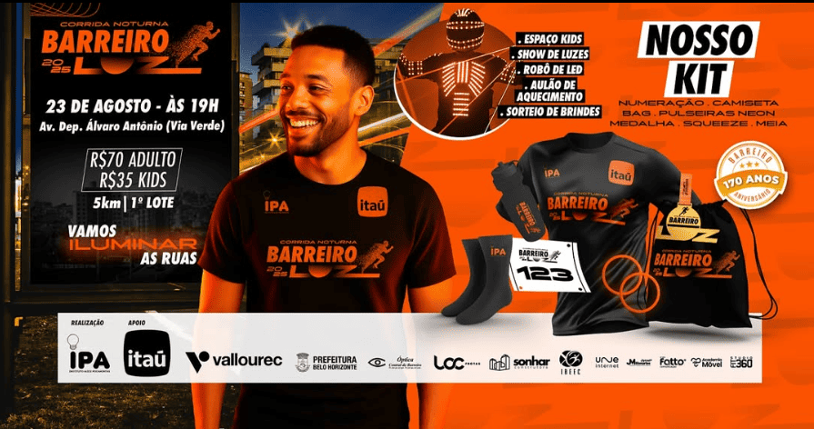 Se prepare para a Corrida Noturna Barreiro Luz 2025, em Belo Horizonte, no dia 23 de agosto de 2025!