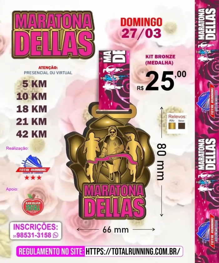 A corrida Maratona Dellas além de promover saúde, esporte e motivação, tem como objetivo homenagear as mulheres, essas Charmosas, Guerreiras, Sonhadoras, Carinhosas, Mãezonas, Sábias, Virtuosas, Apaixonadas, Belas, Encantadoras, Maravilhosas, Amigas, Princesas entre outros adjetivos que são inúmeros.
