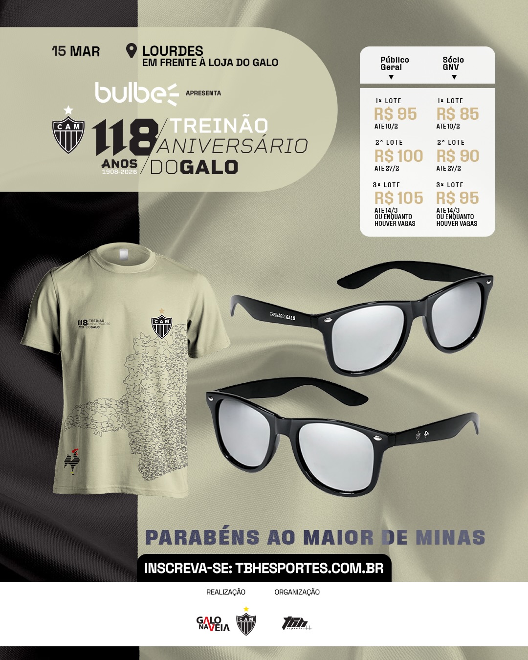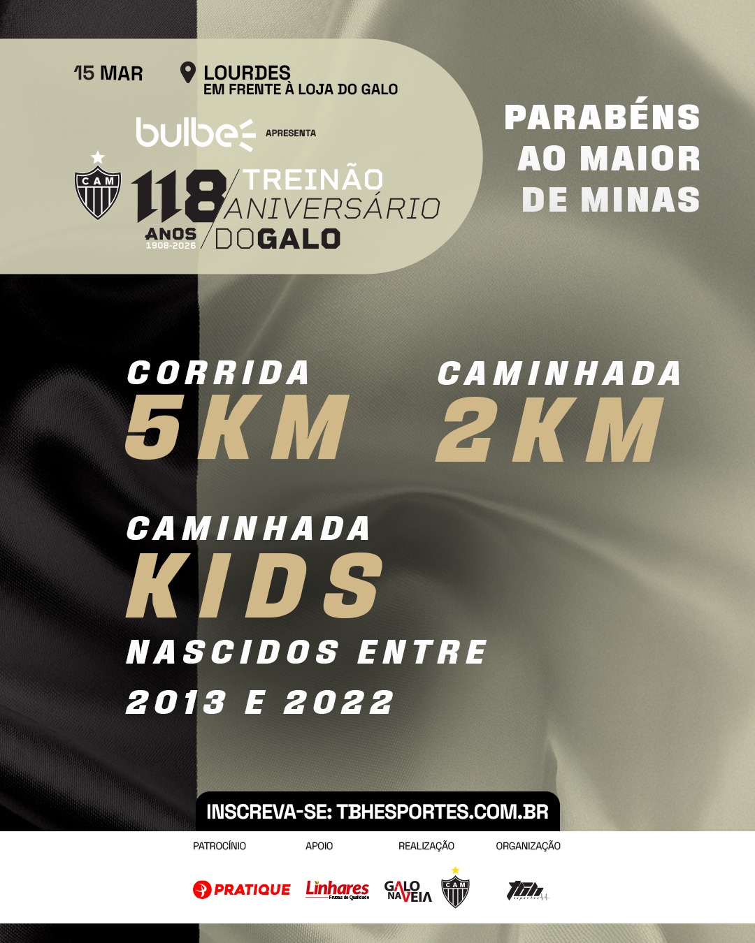 Em comemoração aos 118 anos do clube atlético mineiro, ocorrera a corrida do galo prevista para o dia 15 de Março de 2026, em frente a loja do galo no bairro Lourdes, em Belo Horizonte.