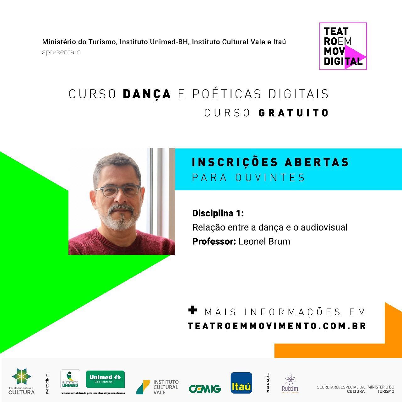 O novo curso "Formação em Dança e Poéticas Digitais”, do @teatroemmovimento, coordenado por Leonel Brumm (@leonelbrum1), totalmente online e gratuito, está com inscrições abertas!
