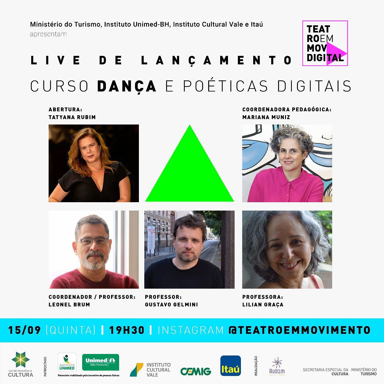 E quinta (15/09) tem live para apresentar o curso e tirar dúvidas com os professores Leonel Brum, Lilian Graça e Gustavo Gelmini, além da participação de Tatyana Rubim (coordenação geral) e Mariana Lima Muniz (coordenação pedagógica).