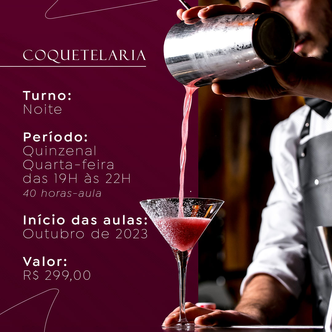 O Curso de Coquetelaria é uma ótima oportunidade de adquirir conhecimentos sobre como preparar bebidas alcoólicas, não alcoólicas e coquetéis.