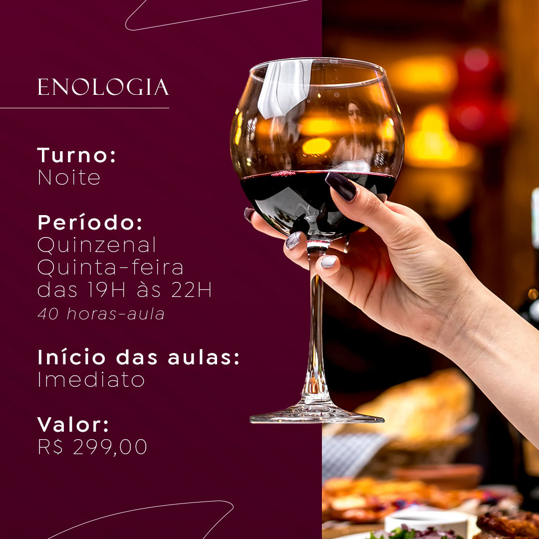 O curso de Enologia oferece uma visão abrangente do mundo dos vinhos, desde a vinificação até a degustação. Ao longo de cinco meses você mergulhará nas principais etapas do processo de produção de vinho e desenvolverá uma compreensão sólida dos elementos que influenciam a qualidade e o sabor dos vinhos. Este curso é perfeito para entusiastas de vinho que desejam aprofundar seus conhecimentos e para aqueles que estão considerando uma carreira na indústria vinícola.