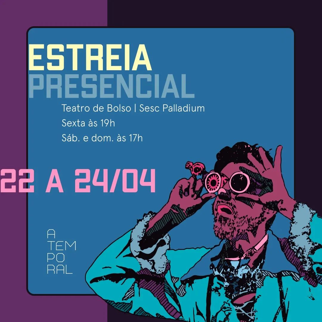 Após ter sua estreia em 2020 adiada pela pandemia, o espetáculo circulou no ano passado em vários festivais online, colecionando cinco prêmios. Agora, em 2022, Atemporal estreia presencialmente de 22 a 24 de abril no Teatro de Bolso do Sesc Palladium.