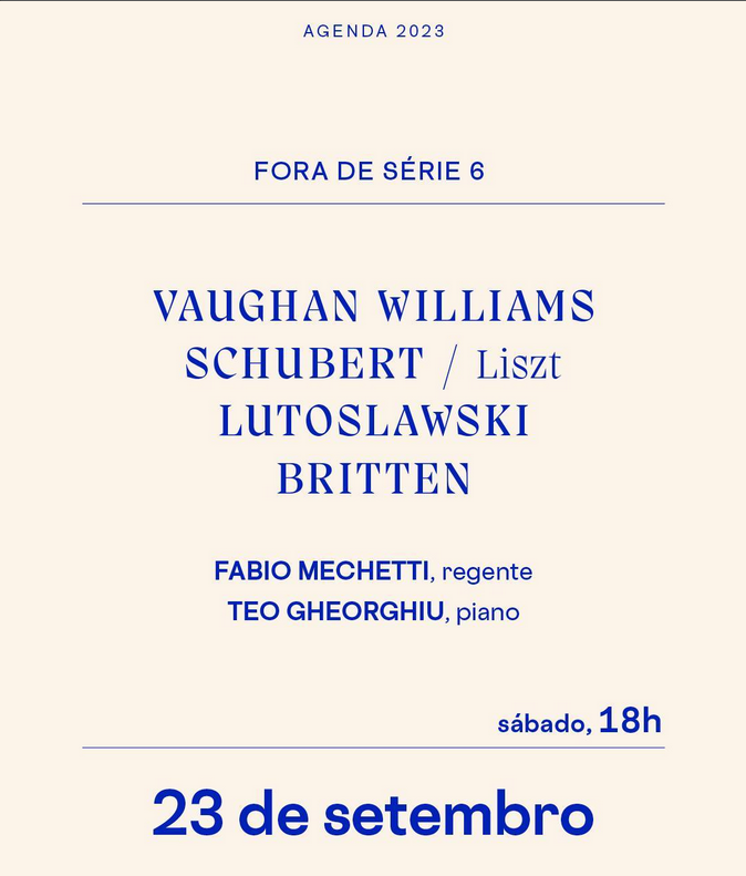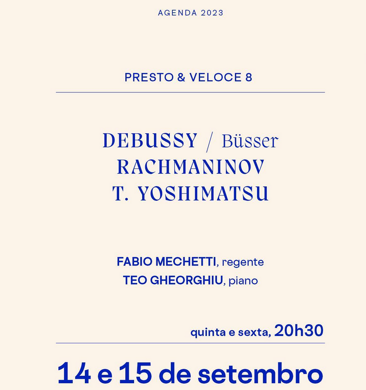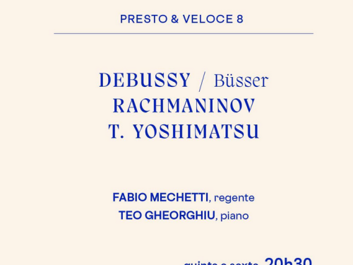 Voltando para nossa casa, a Sala Minas Gerais, receberemos dois talentosos convidados, o pianista Teo Gheorghiu, nos dias 14, 15 e 23, e a violinista Leticia Moreno, nos dias 28 e 29.