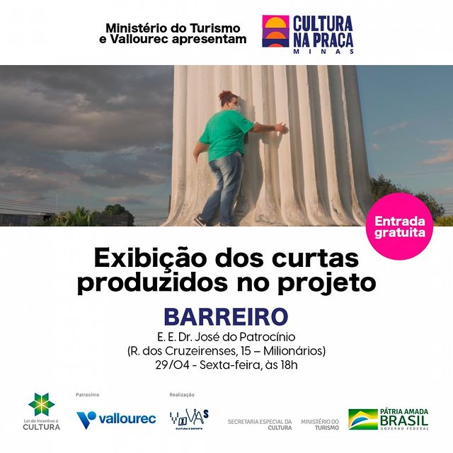 O projeto Cultura Na Praça Minas é viabilizado pela Lei Federal de Incentivo à Cultura, com patrocínio da Vallourec, realização da Vivas Cultura e Esporte e Secretaria Especial de Cultura do Ministério do Turismo, Governo Federal - Pátria Amada Brasil.