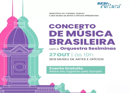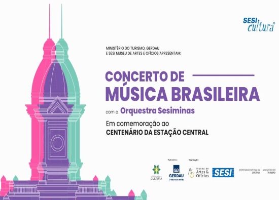 No Dia 27 - Concerto de Música Brasileira com a Orquestra SESIMINAS em homenagem ao Centenário da Estação Central.