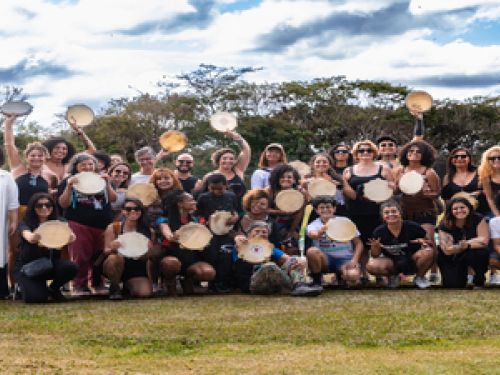 Somos As Panderista, um coletivo composto por mulheres panderista da cidade BH, o coletivo existe desde 2016 e foi idealizado por 3 artistas: Manu Ranilla, Anna Lages e Luísa de Paula.
