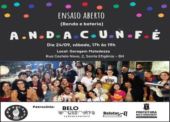 Sábado, dia 24/9, das 17h às 19h, temos mais um ensaio aberto com a presença da banda e da bateria na @garagem_maladezza , no Santa Efigênia!