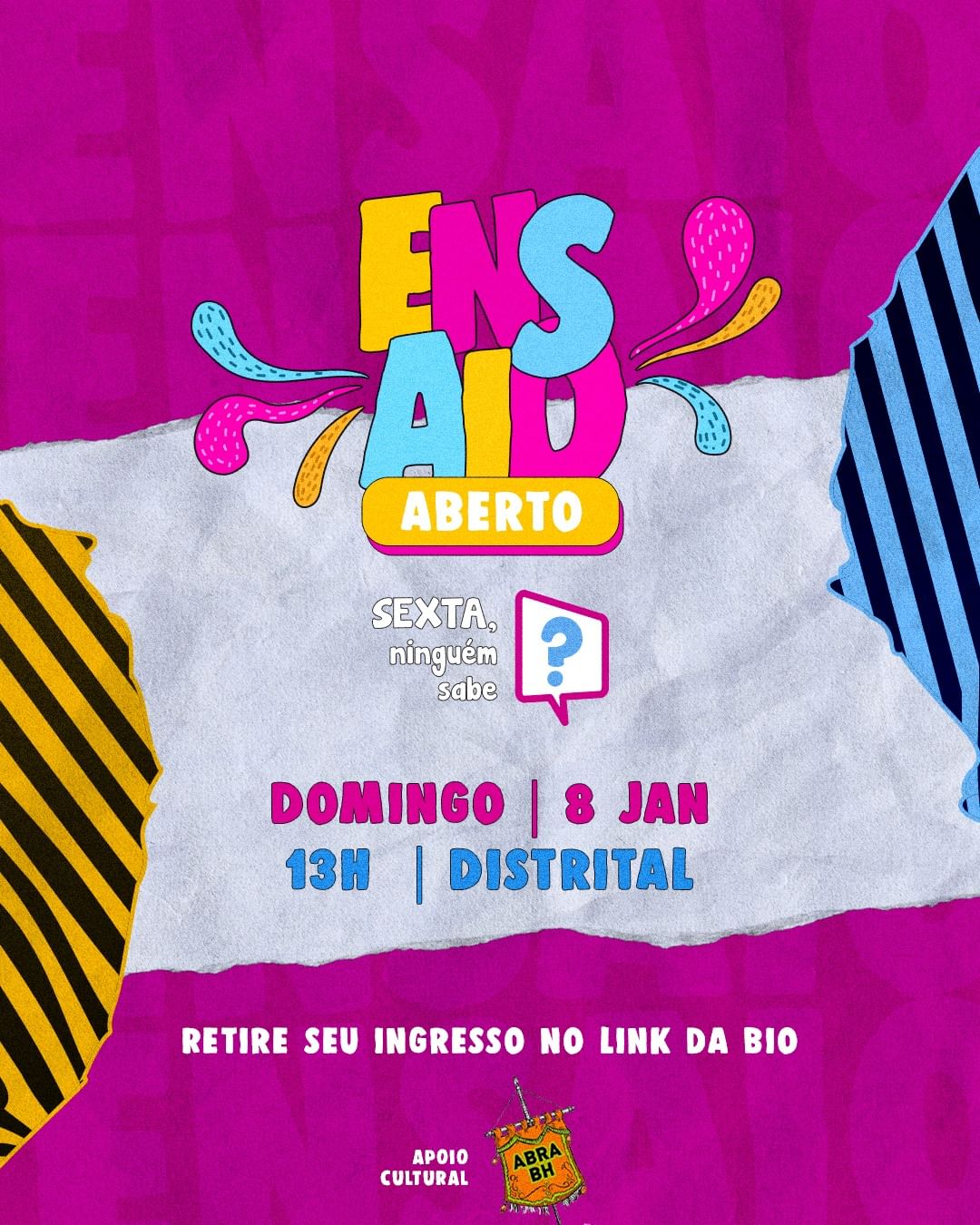 Obaaaa…domingo teremos aquele ensaio aberto do nosso bloco para animar o seu final de semana!