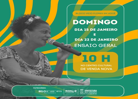 Nosso primeiro ensaio de bateria acontece no próximo domingo, às 10h do dia 08, no Centro Cultural de Venda Nova!