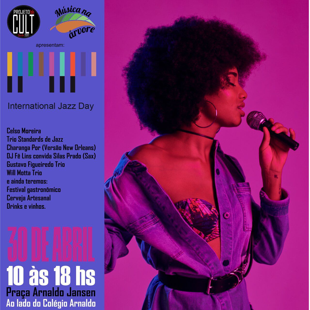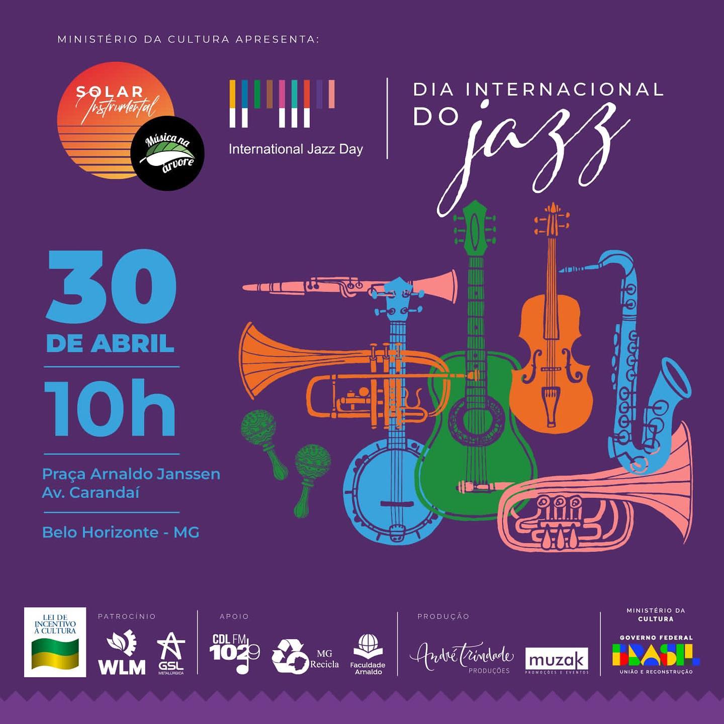Dia 30 o Projeto BH Cult recebe o Musica na Árvore em homenagem ao Dia Mundial do Jazz.