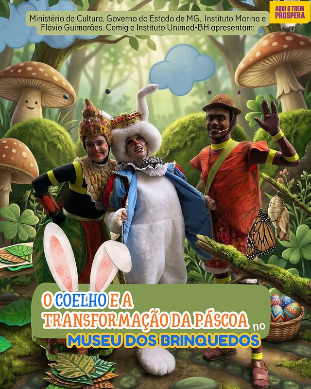 O grande destaque acontece no dia 3 de abril, com o espetáculo “O Coelho e a Transformação da Páscoa”, às 11 da manhã, uma fábula musical que convida o público a descobrir que o verdadeiro sentido da Páscoa vai muito além dos ovos e chocolates, ele mora nos encontros, no cuidado e na convivência.