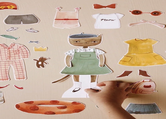 Tecidos, papéis, linhas, fitas, botões, colagens, sobreposições, dobraduras construídas sobre figuras e moldes intercambiáveis serão usados para tais criações.