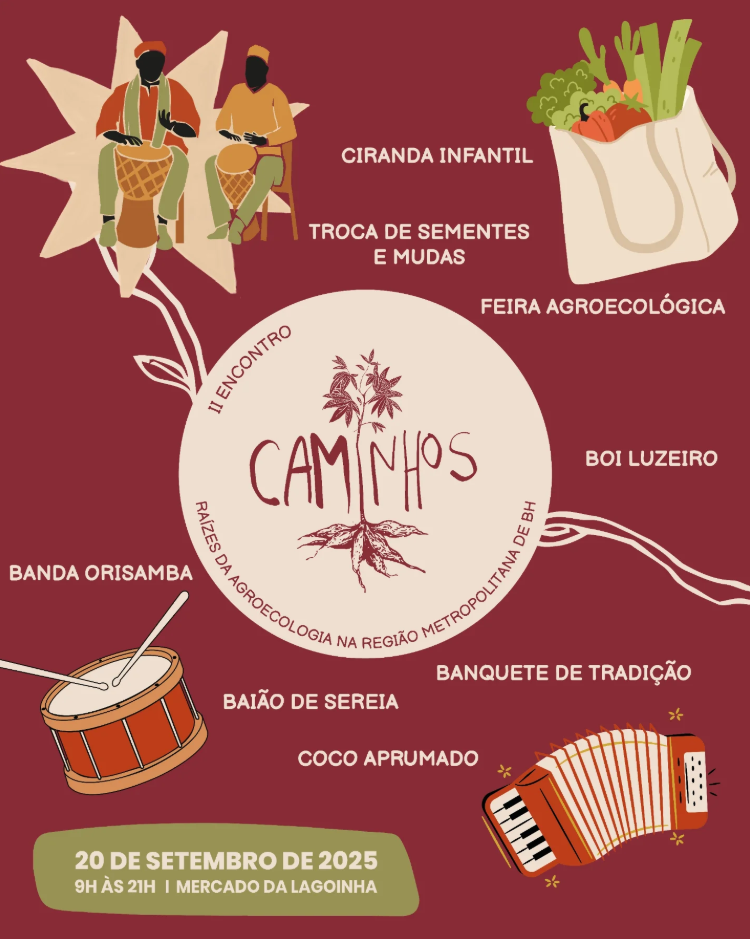 No sábado, dia 20 de Setembro acontece mais uma edição do Encontro Caminhos, com o tema Raízes da Agroecologia na Região Metropolitana de BH. O evento acontece das 19h às 21h, no Mercado da Lagoinha (CRESAN).