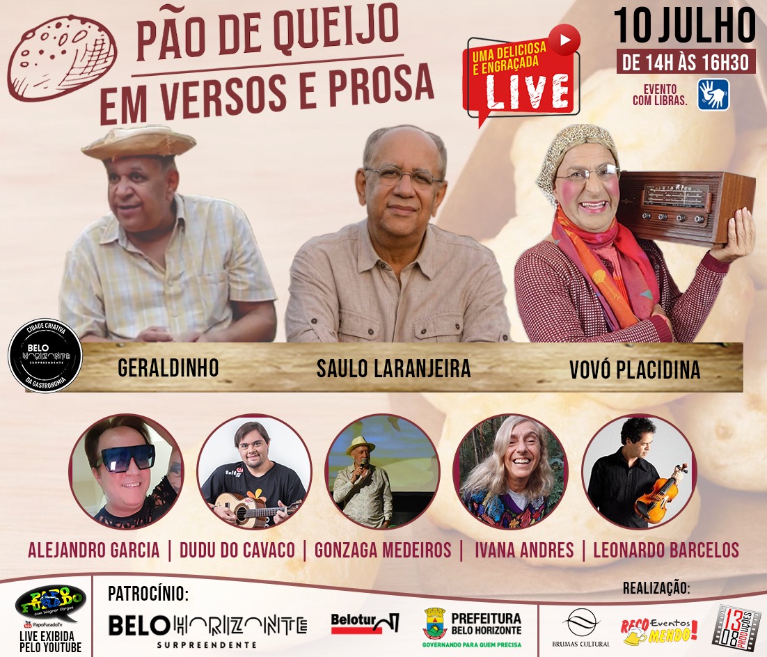 Abrindo a Live, o renomado mestre de cerimônia Gonzaga Medeiros convida os artistas; Leonardo Barcelos, Dudu do Cavaco, Ivana Andrês Ribeiro e com muita Alegria os grandes Artistas, Saulo Laranjeiras e Aguinaldo Pereira, representando seus personagens “Geraldinho e Vovó Palacidina” com muito humor contaram vários “causos” dessa maravilhosa receita.