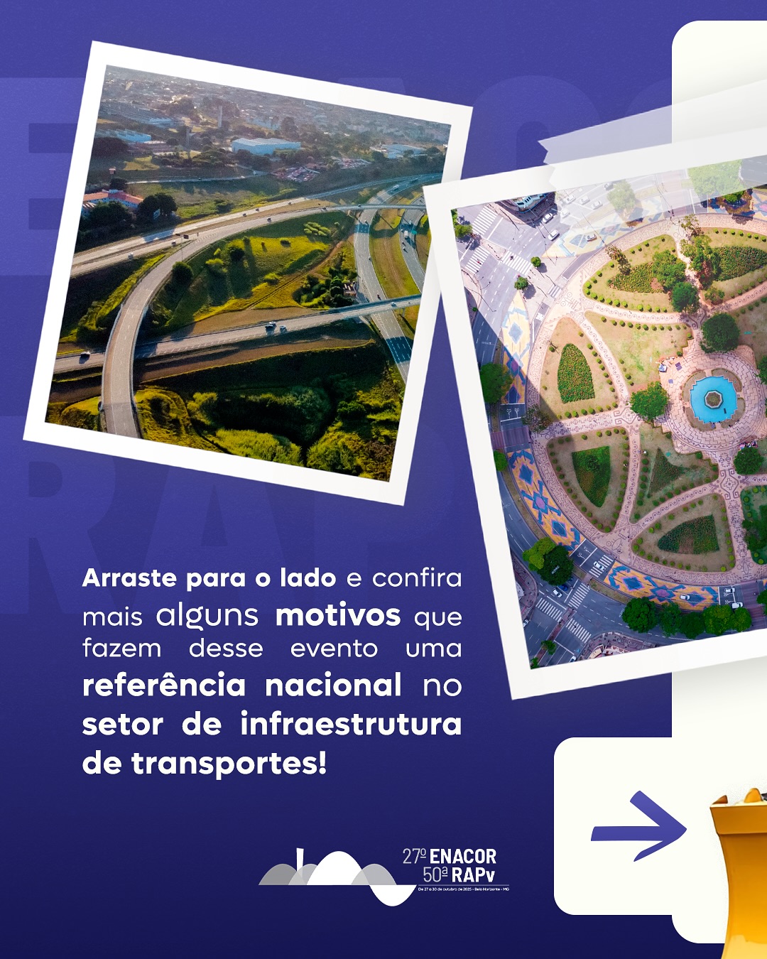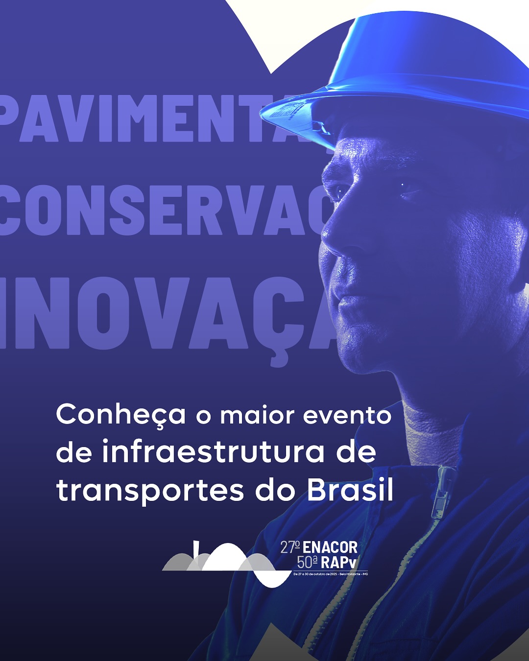 Com os cumprimentos das Diretorias da ABDER – Associação Brasileira dos Departamentos Estaduais de Estradas de Rodagem, da ABPv – Associação Brasileira de Pavimentação e do DER/MG – Departamento de Edificações e Estradas de Rodagem de Minas Gerais, informamos que será realizado, de modo presencial, o 27º Encontro Nacional de Conservação Rodoviária (ENACOR), da 50ª Reunião Anual de Pavimentação (RAPv) e da 6ª ExpoEnacorRapv, em Belo Horizonte, entre os dias 27 e 30 de outubro de 2025.
