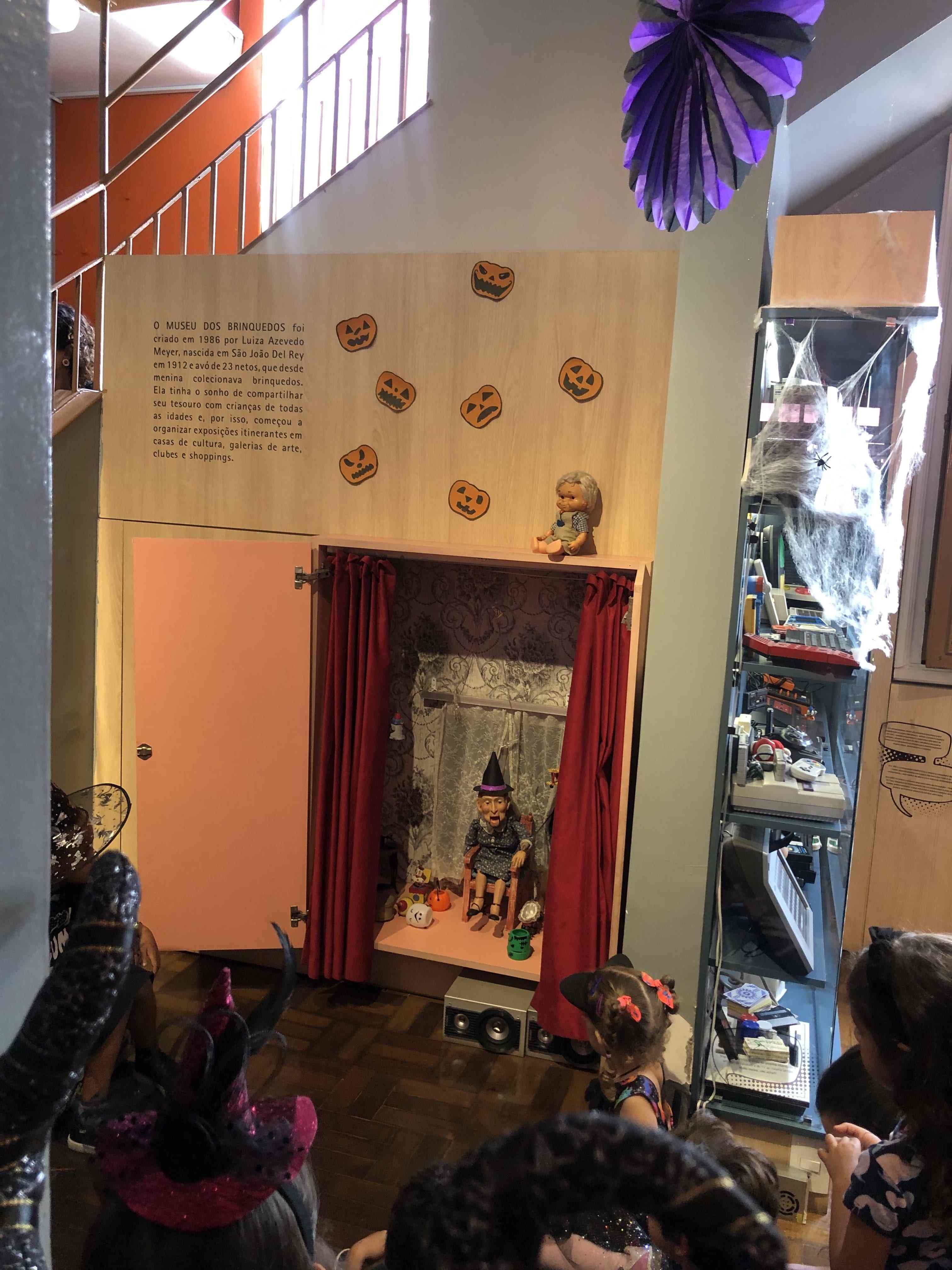 A marionete Vovó Luiza, fundadora do Museu, encantará a todos com a história de sua coleção de brinquedos fofos, mas cuidado… também há exemplares de arrepiar que, no Halloween, costumam aparecer! Que tal embarcar em uma caçada horripilante pela exposição, proposta pela própria Vovó Luiza?