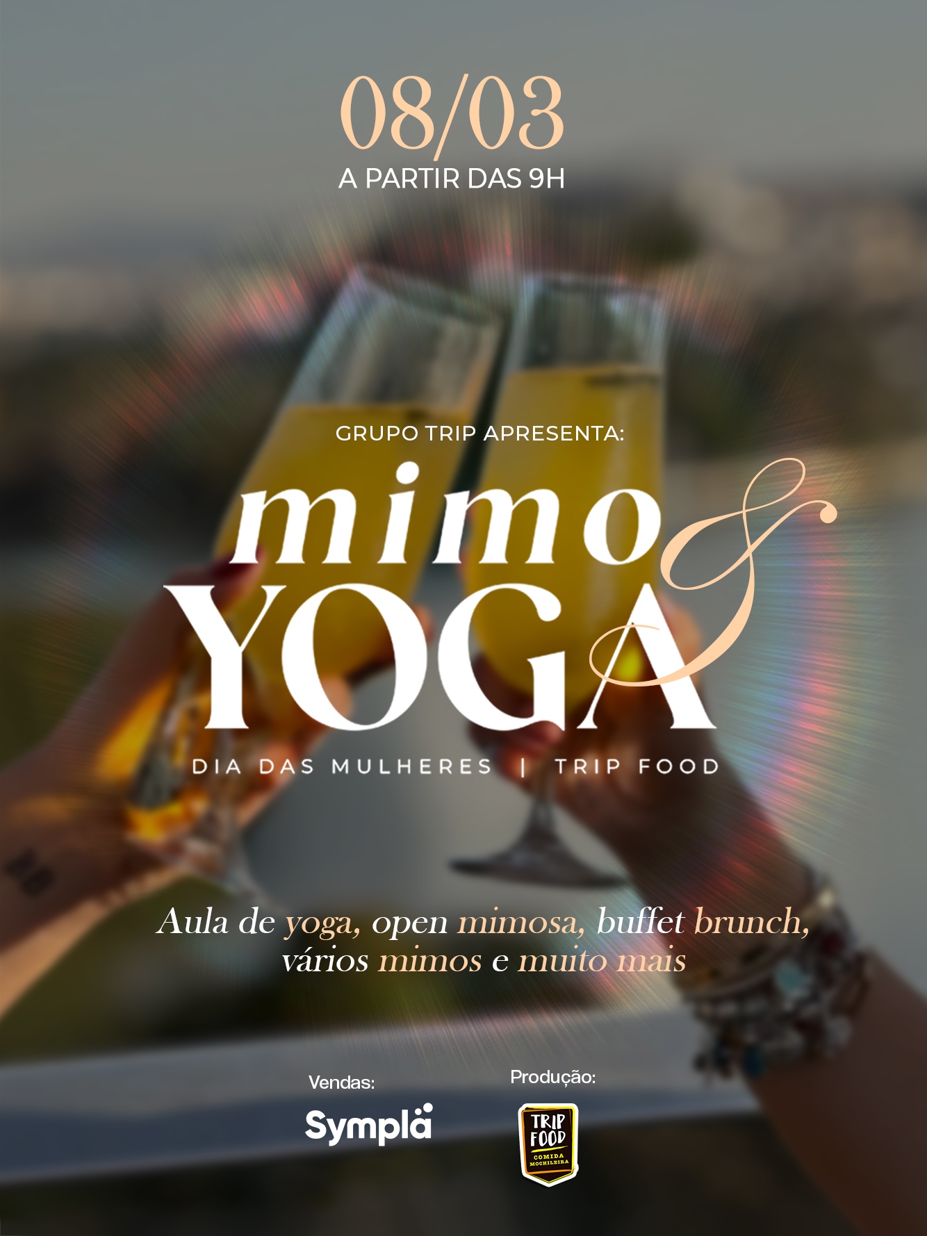 Combo perfeito: aula de Yoga free + um brunch delicioso pra você se servir a vontade de open Mimosa!