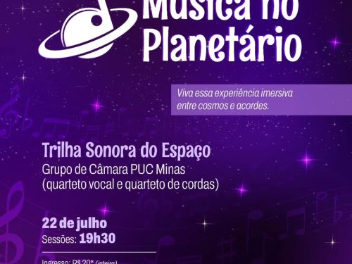 Uma iniciativa inovadora da Secretaria de Cultura da PUC, promovendo a parceria do Museu de Ciências Naturais com a Música PUC Minas.O projeto combina música ao vivo com uma experiência visual imersiva dentro do Planetário, transportando o público para uma jornada sensorial pelo universo.