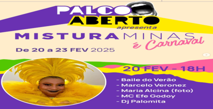 O evento faz parte do programa Palco Aberto, da Fundação Clóvis Salgado, e será realizado nos dias 20, 21 e 23 de fevereiro – quinta e sexta-feira, a partir das 18h, e domingo às 16h – com atrações que prometem uma fusão vibrante entre diversos ritmos, reunindo diferentes músicos em uma grande celebração para toda a família.
