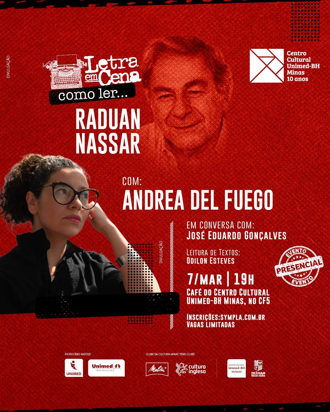 No dia 7/3, terça-feira, às 19h, no Café do Centro Cultural Unimed-BH Minas, será realizada a primeira sessão da edição 2023 do programa literário do Minas Tênis Clube “Letra em Cena. Como ler...” que terá como tema a obra de Raduan Nassar.