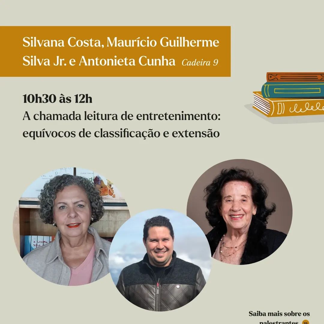 Projeto Literatura, Muito Prazer! Concebido para estimular a leitura literária prazerosa. Nesta oportunidade, a ilustre presença de Olavo Romano, escritor que ocupa a cadeira 37 da AML. Silvana Costa, professora e escritora dedicada à literatura infantil, Maurício Guilherme Silva Jr., escritor e jornalista, e Antonieta Cunha, professora e escritora que ocupa a cadeira 09 da AML, também participam fazendo uma reflexão sobre a chamada leitura de entretenimento.