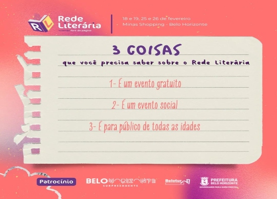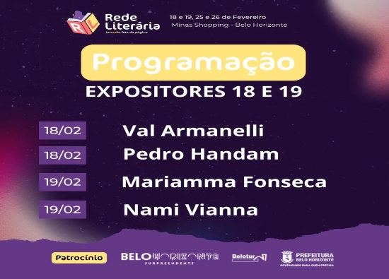Nos dias 18, 19, 25 e 26 de Fevereiro, estaremos com nosso evento no Minas Shopping próximo à loja da Riachuelo em uma celebração literária que contará com contação de histórias, palestras temáticas e muito mais.