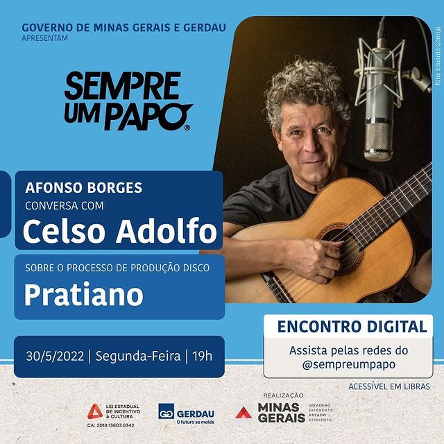 O músico mineiro Celso Adolfo participa do Sempre Um Papo na próxima segunda-feira, 30 de maio, para falar sobre o processo de produção e para apresentar algumas faixas do seu mais novo CD, intitulado “Pratiano”.