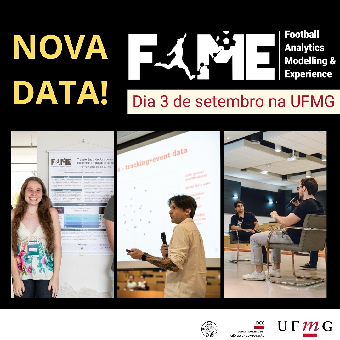 O Sports Analytics Lab (SALab) do Departamento de Ciência da Computação da UFMG tem o prazer de apresentar a terceira edição do “FAME: Football Analytics and Modeling Experience”, um evento dinâmico destinado a unir a ciência de dados e o futebol.