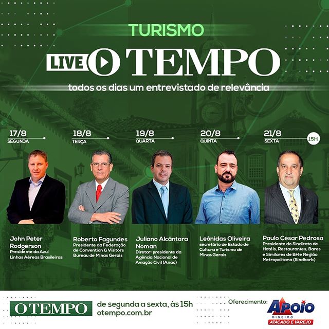 Essa semana a Live do Tempo será dedicada ao Turismo e recebe convidados que irão discutir o setor na pandemia e as perspectivas para o futuro, com foco em aviação, destinos, hotéis, bares e restaurantes.