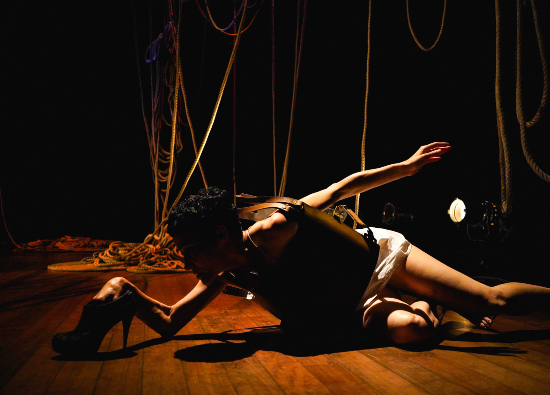 Essa permeabilidade voluntária da obra, que incita-nos a aguçar o olhar e a escuta com relação às normas e às possibilidades de transgressão e proporciona uma reflexão sobre o transgressor e o transgredido, também se dá na concepção permeável dos cenários e figurinos em constante mutação durante o espetáculo, assim como nas restrições impostas por objetos utilizados pela bailarina, sempre desafiada a criar novos padrões de movimento numa relação dinâmica com a música e com a própria concepção de coreografia.
