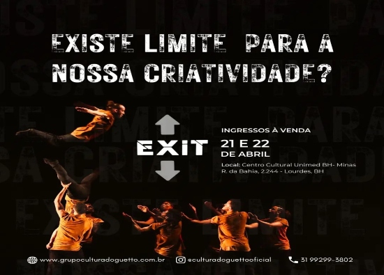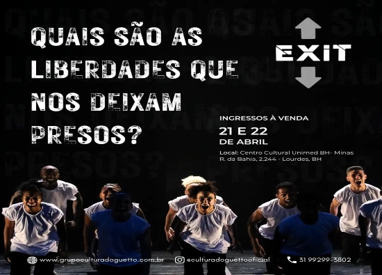 O Grupo Artístico Cultura do Guetto apresenta no Teatro do Centro Cultural Unimed-BH Minas o espetáculo Exit.