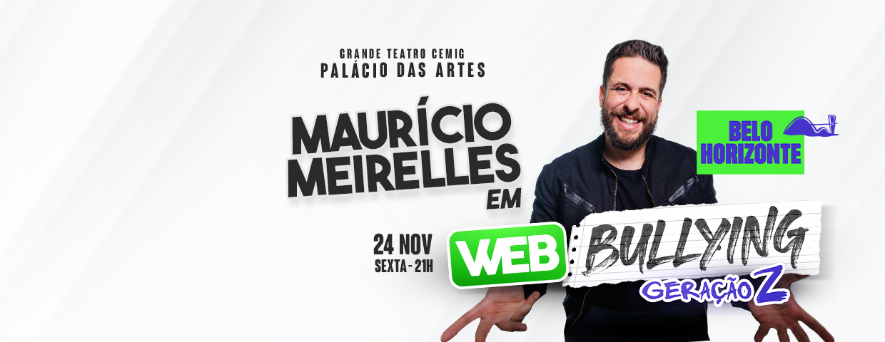 O humorista Maurício Meirelles desembarca em Belo Horioznte para única apresentação do espetáculo “Web Bullying – Geração Z”, no Grande Teatro Cemig Palácio das Artes, no dia 24 de novembro, sexta-feira, às 21h.