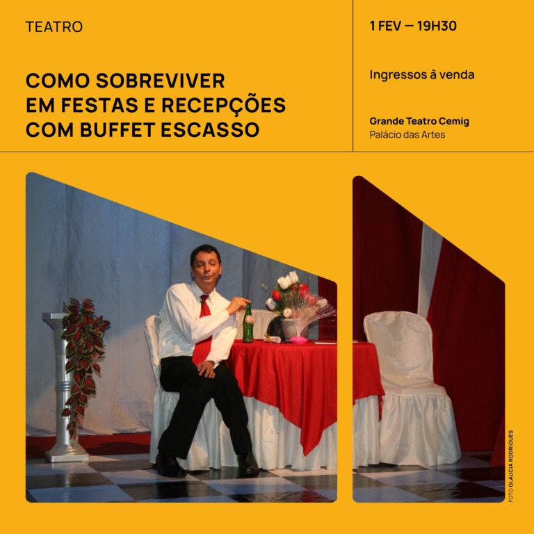 26 ANOS DE SUCESSO! O ator Carlos Nunes narra fatos típicos em ambientes de festas com buffet escasso e ensina alguns truques para que a plateia não passe por situações desagradáveis ou constrangedoras nessas ocasiões. O clima é propício para que o humorista, acompanhado pelos atores Diego Krisp e Marcos Khass, interprete vários personagens capazes de levar o público a gargalhadas contínuas.