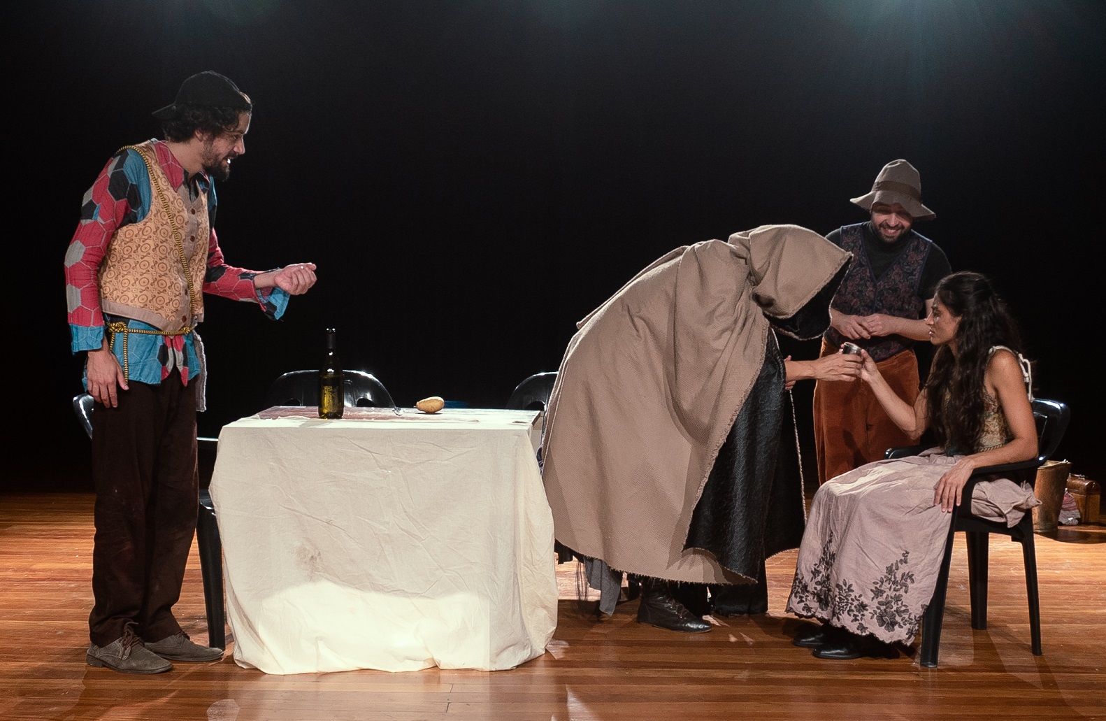 A preparação de elenco, realizada por Joyce Malta, investigou as corporeidades de personagens bufônicas e as potências do cômico, numa criação coletiva com as atrizes Bramma Bremmer e Gabriela Veloso, e os atores Lucas Nicoli e Pedro Lanna.