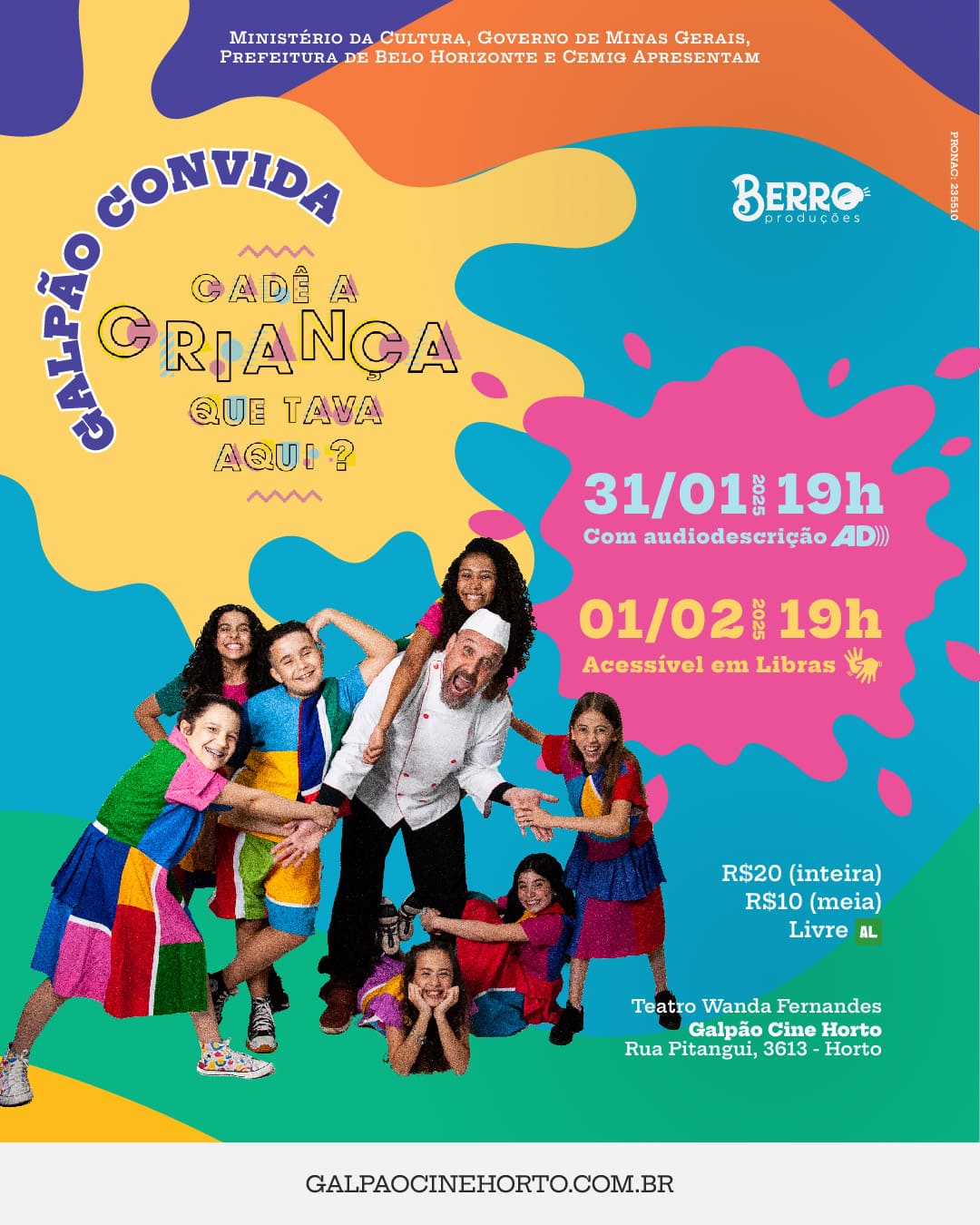 Espetáculo "Cadê a Criança que Tava Aqui?" – Um musical para resgatar a magia da infância. O musical, dirigido por Bernardo Berro, é uma reflexão sensível sobre a transição da infância para a vida adulta, destacando a importância de manter vivo o espírito lúdico e sonhador que carregamos nos primeiros anos de vida.