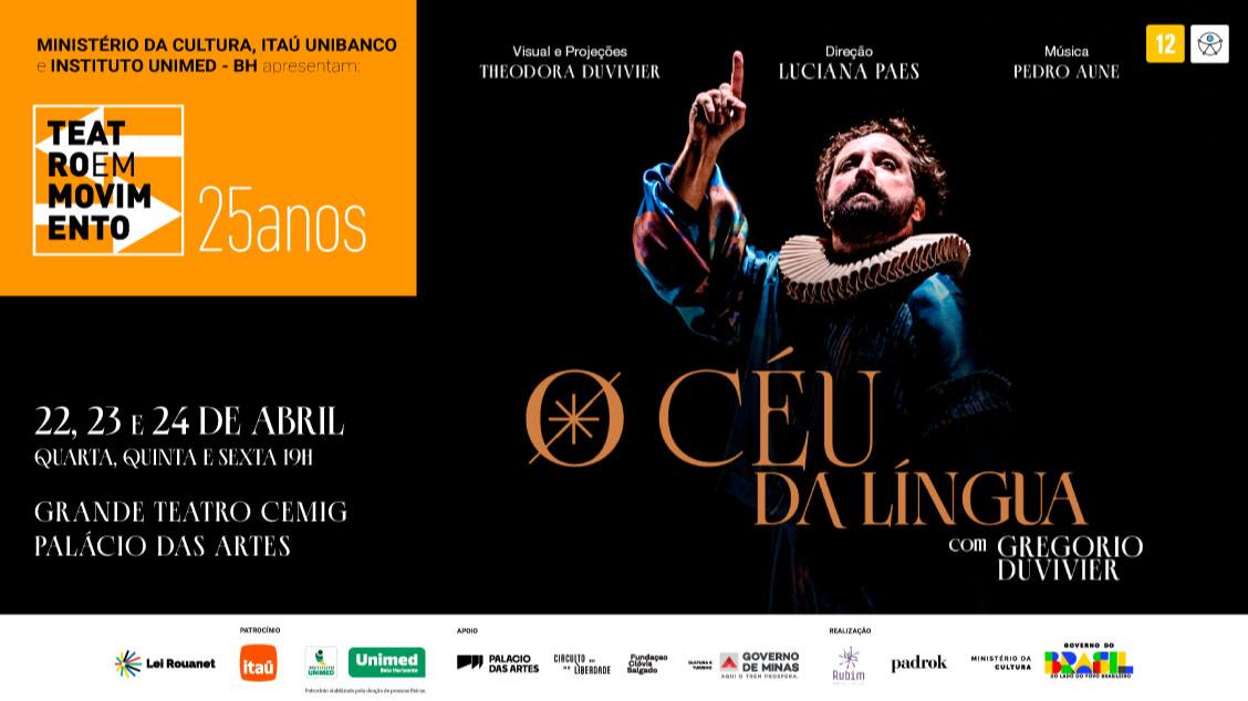 Quem tem medo de poesia? Gregorio Duvivier não faz parte deste grupo e, como um apaixonado, faz de tudo para persuadir os outros das qualidades do seu objeto de encanto – até mesmo criar um espetáculo sobre o assunto. No monólogo cômico “O Céu da Língua”, o artista usa o seu discurso sedutor para convencer o público de que tropeçamos diariamente na poesia e o assunto é prazeroso e divertido.