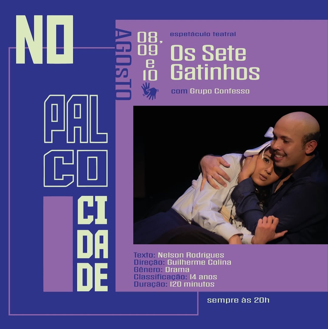 Em Os Sete Gatinhos, Nelson Rodrigues escancara a selvageria das sombras de um núcleo familiar carioca dos anos 50. Trazendo à tona os sentimentos que perpassam amor e ódio, ingenuidade e malícia, ele desmascara o desespero, a inveja, culpa, luxúria e ira que acontecem entre quatro paredes, por trás das aparências sociais.