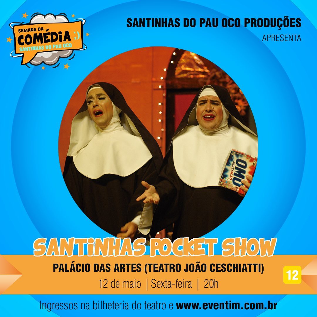 No dia 12 de maio, às 20h no Palácio das Artes, o espetáculo "Santinhas Pocket Show".