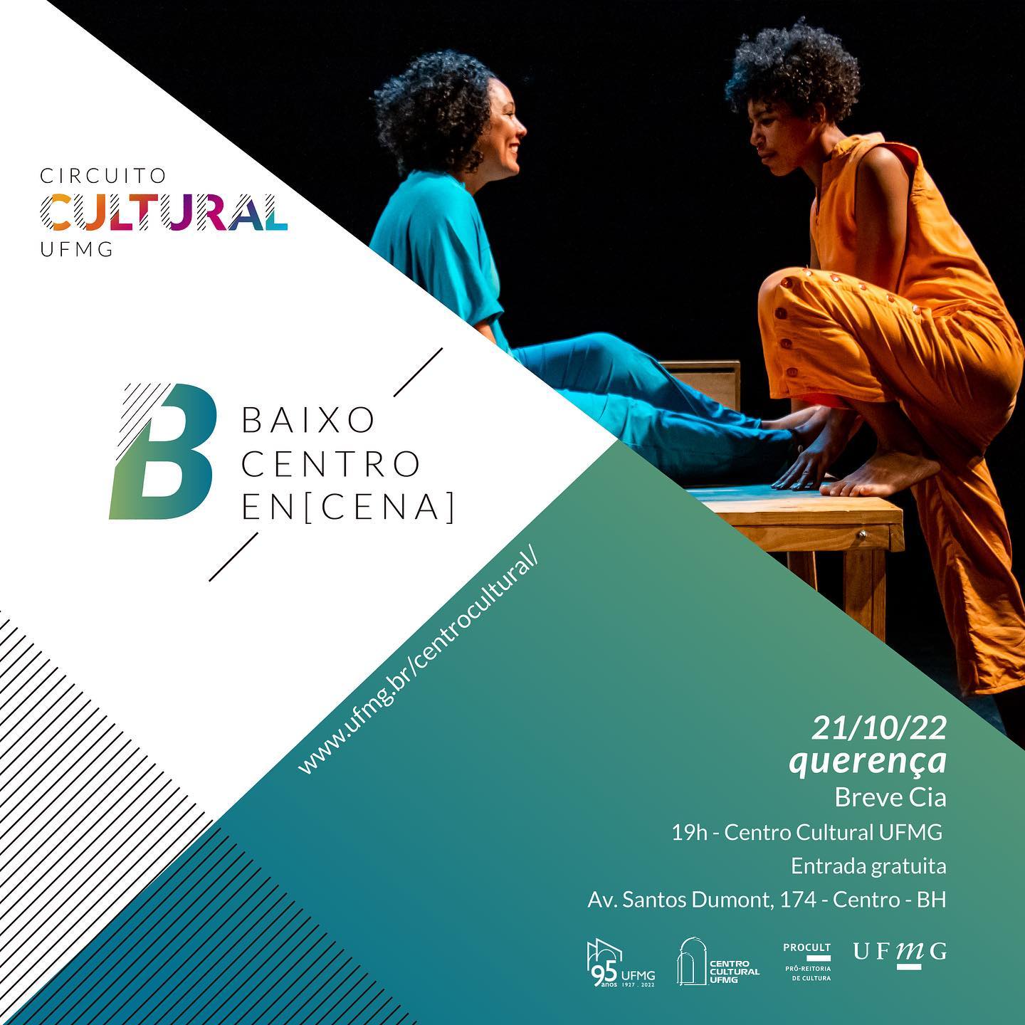 O evento integra o projeto Baixo Centro En[cena], como parte da programação do Circuito Cultural UFMG.