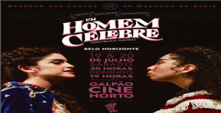 A Trupe Qualquer, coletivo artístico com raízes mineiras e que tem percorrido o país com sua linguagem cênica, chega a Belo Horizonte com o espetáculo "Um Homem Célebre". Rafael Coutinho assina o texto e a direção da peça que traz uma adaptação dos contos de Machado de Assis e faz temporada no Galpão Cine Horto nos dias 19 e 20 de julho, sábado e domingo. A montagem proporciona uma experiência teatral de reflexão e imersão na obra do bruxo do Cosme Velho.