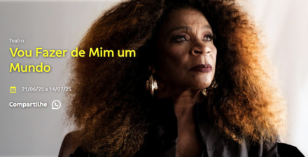 Em comemoração à trajetória de uma das artistas mais aclamadas do país e que inspira gerações de mulheres negras na luta por espaço, expressão e oportunidades, o Centro Cultural Banco do Brasil (CCBB) traz para seu palco de Belo Horizonte, depois de uma temporada com lotação esgotada em todas as apresentações do CCBB Brasília, o primeiro monólogo da carreira de Zezé Motta: “Vou Fazer de Mim um Mundo”. A montagem estreia no dia 21 de junho e fica em cartaz até 14 de julho, no Teatro I do CCBB BH, de sábado a segunda, sempre às 20h. Os ingressos serão vendidos a R$30 (inteira) e R$15 (meia-entrada), a partir de 11/06 (quarta), no site ccbb.com.br/bh e na bilheteria do CCBB BH. Todas as sessões contarão com acessibilidade em Libras e haverá bate-papo após o espetáculo no dia 5 de julho.