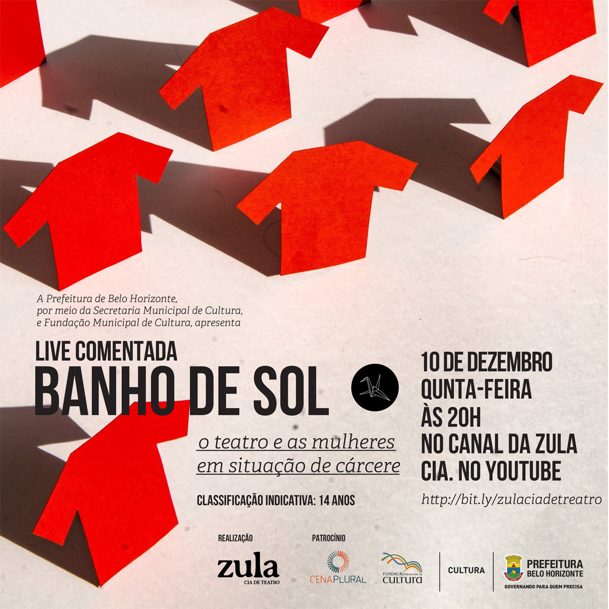 No dia 10 de dezembro, às 20h, a Zula Cia. de Teatro fará uma live comentada do espetáculo, através da página do grupo no Youtube. Essa ação está sendo realizada com os recursos do edital CenaPlural 2020 da Secretaria Municipal de Cultura de Belo Horizonte.