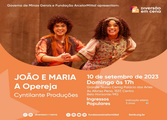No dia 10 de setembro, domingo, às 17h, estreia, no Grande Teatro Cemig Palácio das Artes, “João e Maria – Opereja”, novo musical da Cyntilante Produções que presta homenagem à cultura do sertão brasileiro.