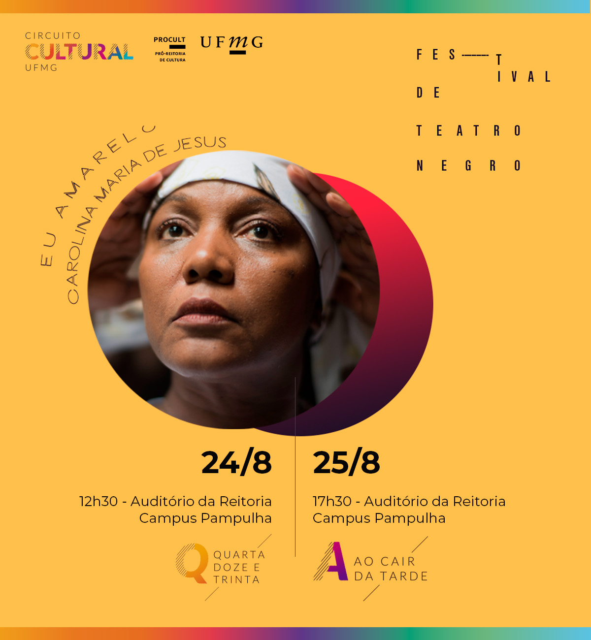 A realização é da Pró-reitoria de Cultura da UFMG (Procult), por meio do Circuito Cultural UFMG, em parceria com o 2º Festival de Teatro Negro da UFMG, promovido pelo Teatro Universitário (TU).