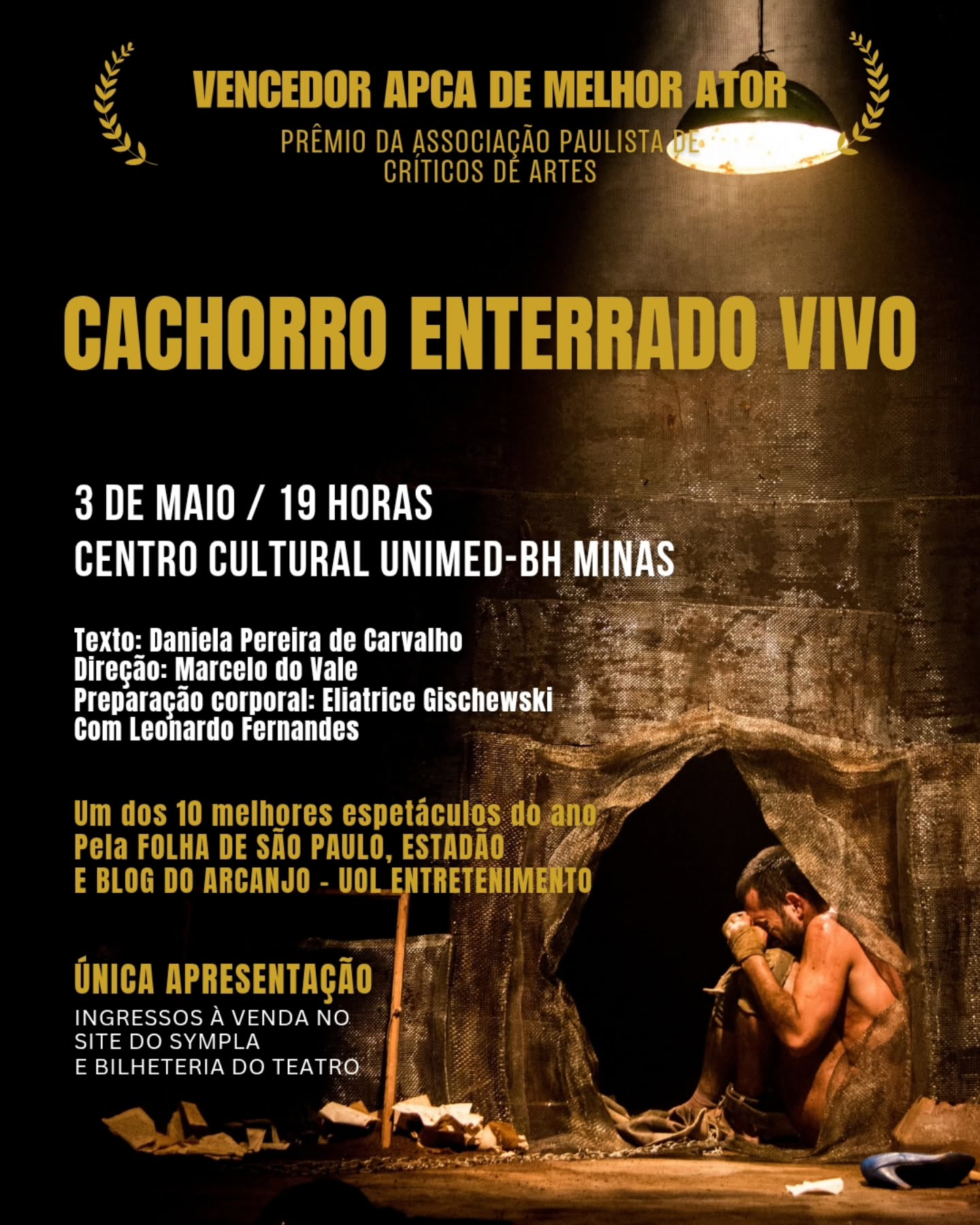 Com texto inédito de Daniela Pereira de Carvalho, escrito especialmente para marcar o primeiro solo de Leonardo Fernandes, e direção de Marcelo do Vale, o espetáculo articula três monólogos que se cruzam em uma situação aparentemente banal: numa tarde comum de quinta-feira, o vigia de um terreno aceita a proposta de um passante para cavar a cova e enterrar seu cachorro. Preço acertado, o homem retorna trazendo a seu lado um cão vivo. A partir desse gesto desconcertante, a dramaturgia expõe camadas profundas de humanidade, tensiona convenções sociais e desafia o espectador a rever o que entende por civilização e animalidade.